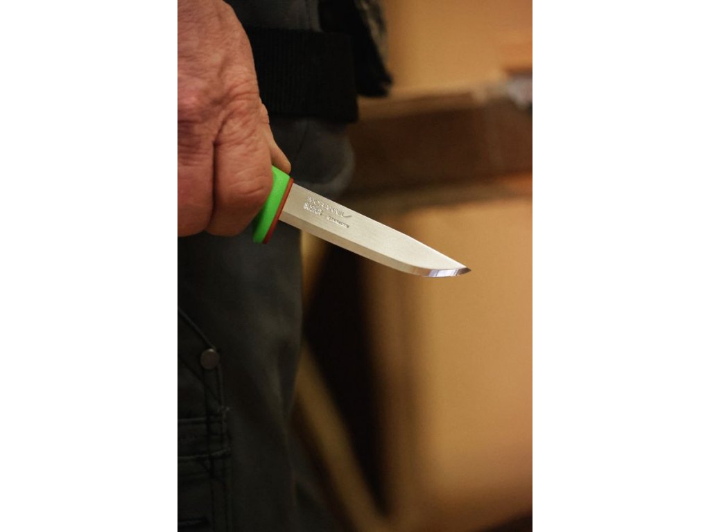 Řemeslný nůž má ergonomickou rukojeť vyrobenou z polymeru s výrazným chráničem prstů a 2,0 mm silnou čepel z recyklované švédské nerezové oceli, která poskytuje sílu v každém řezu. Vyrobeno v továrně na nože v Mora, Švédsko.