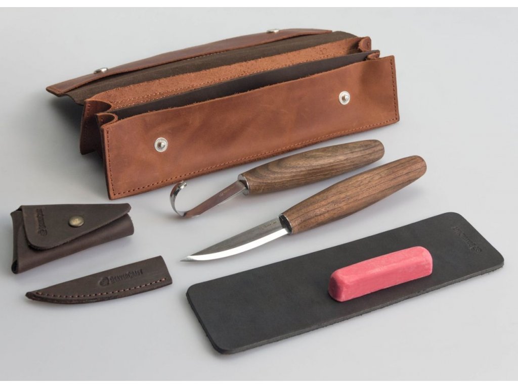 Základní vyřezávací sada ideální pro začátečníky navržená pro vyřezávání lžiček a opracování dřeva. Všechny nástroje jsou ručně vyrobené z vysoce kvalitní uhlíkové oceli s tvrdostí 56 – 58 HRC a dobře nabroušené.