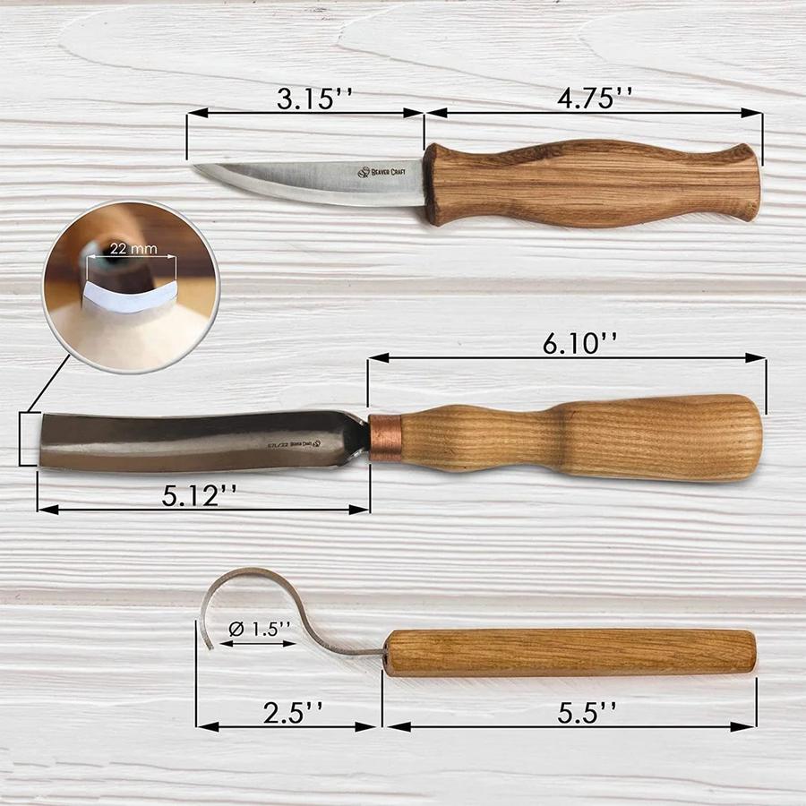 Sada je navržená pro vyřezávání a vydlabávání lžic, Kuksa misek, hlubokých prohlubní a dalších zaoblených předmětů.